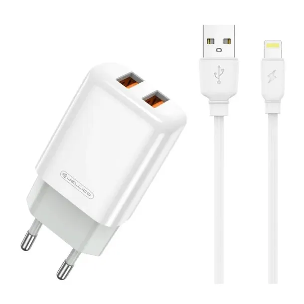 Ładowarka 2.4A 2xUSB +kabel lightning zestaw biały